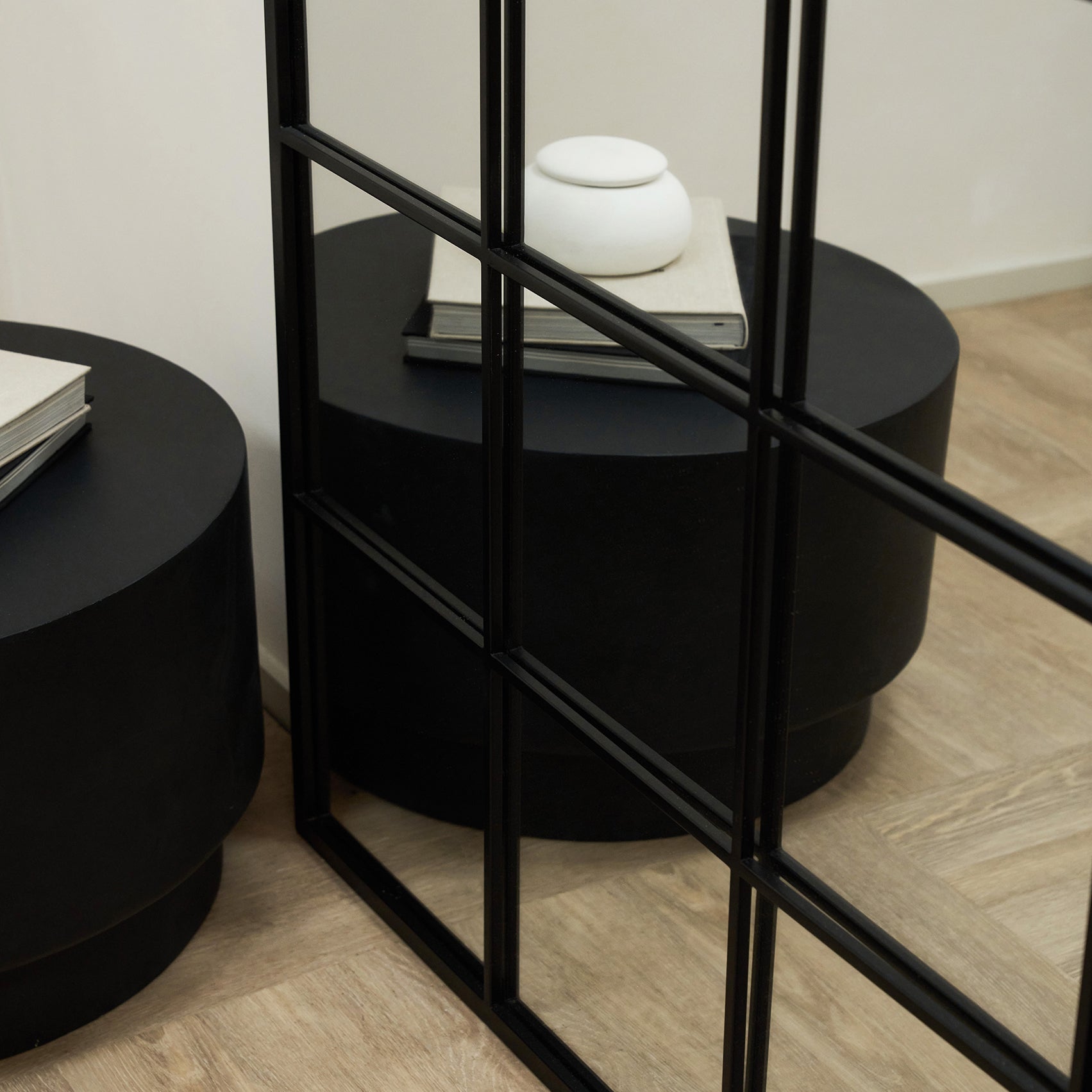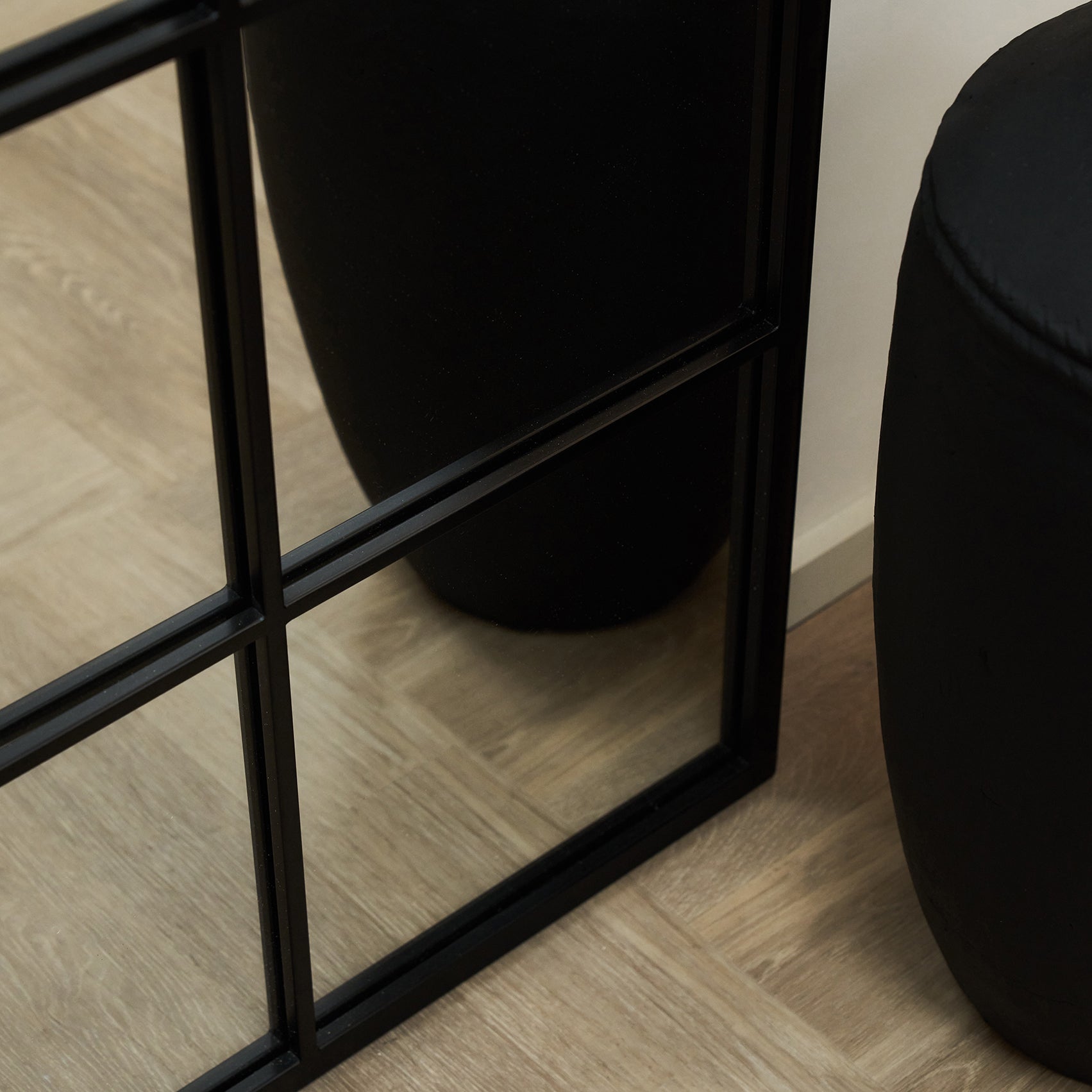 Welded by hand from powder coated steel and boasting a distinctive and timeless window pane design, this full length Brooklyn mirror is guaranteed to uplift any interior it is placed in with its sophisticated matte black finish.