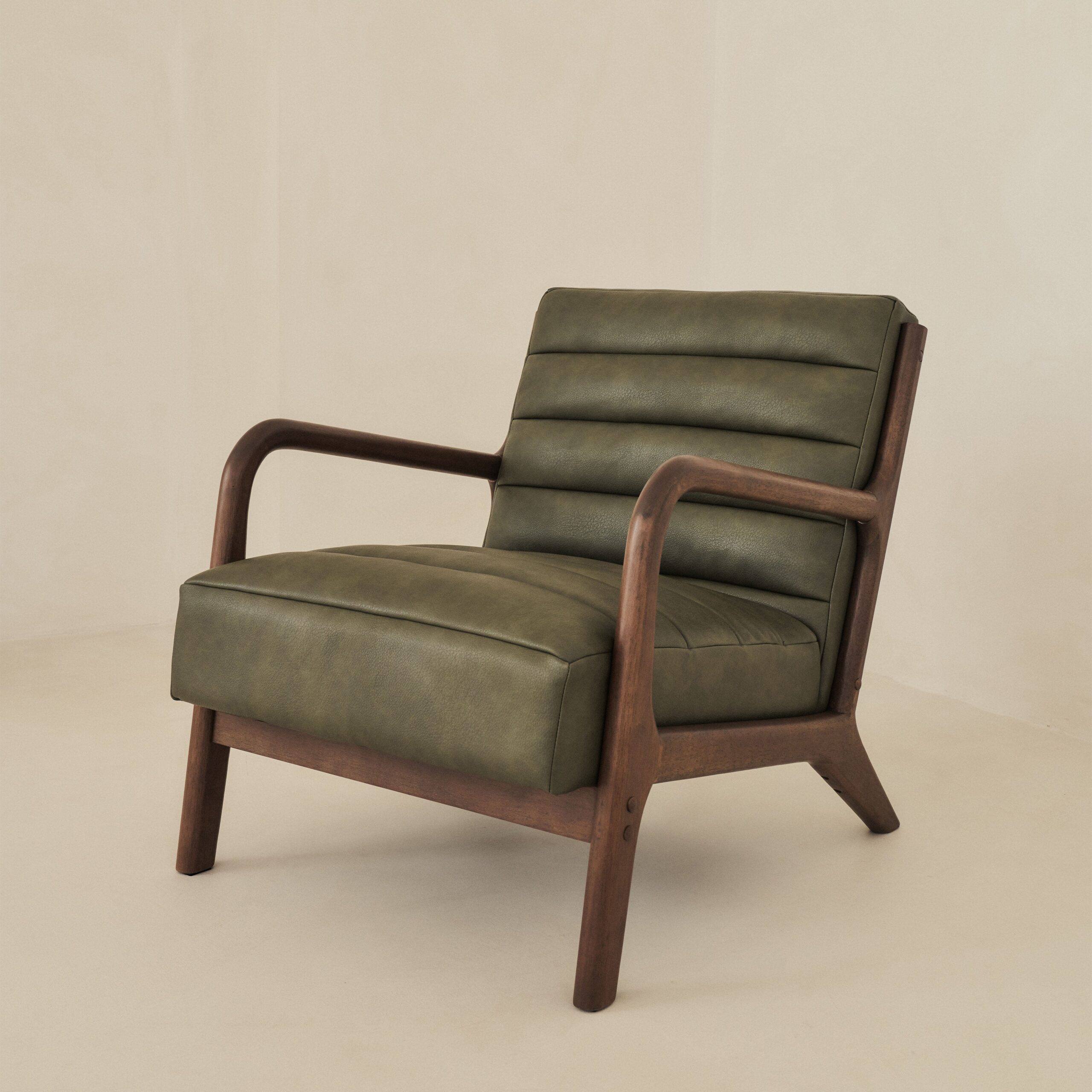 Hudson – Leather Accent Chair Olive & Dark Wood