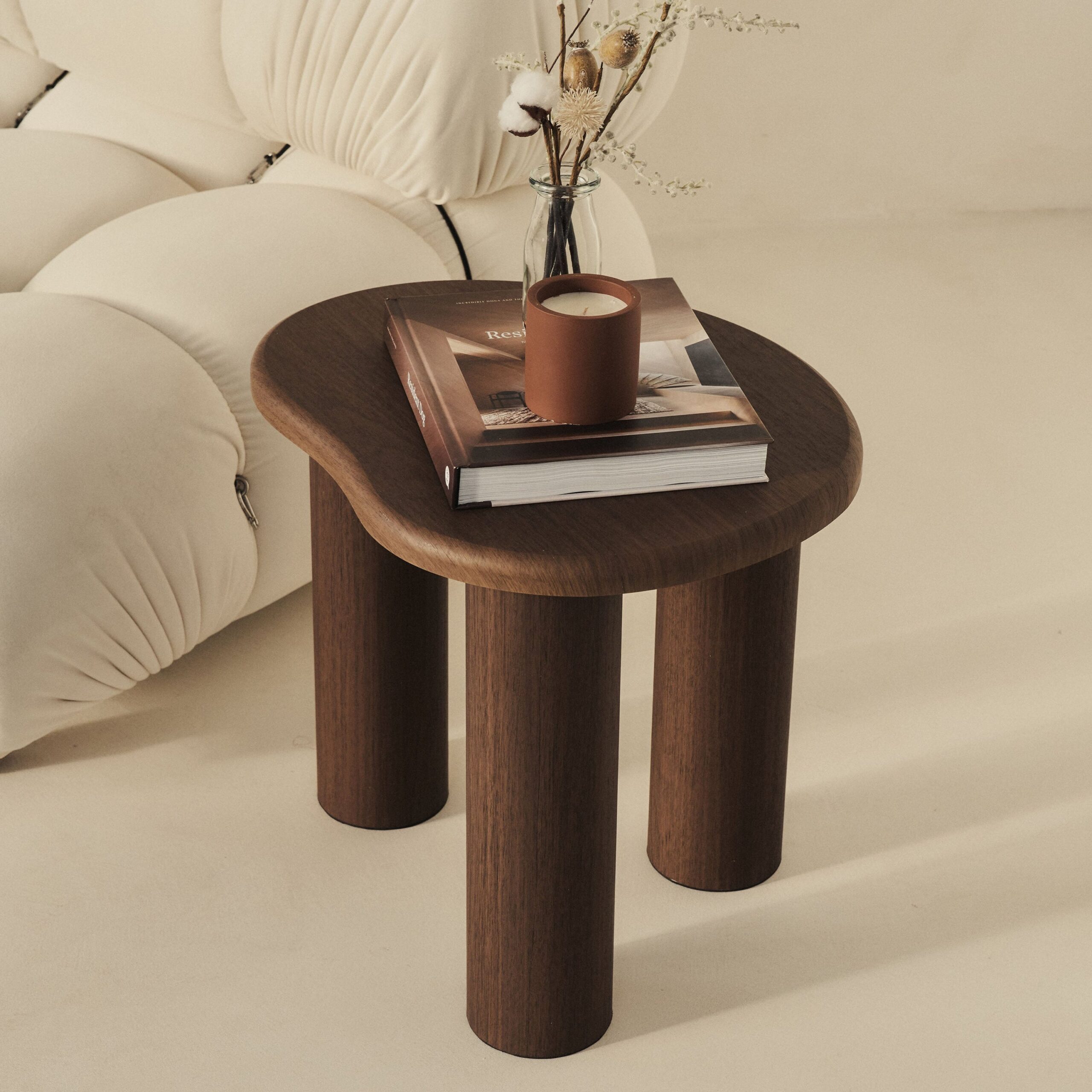 Elevate your living space with the Savanna Side Table. A sleek and simple side table that incorporates a minimalistic design approach with a sophisticated dark wood veneer finish and distinct irregular shape, adding a sense of unique flair to your room. Perfect for displaying your favourite decor or for keeping everyday essentials within reach.